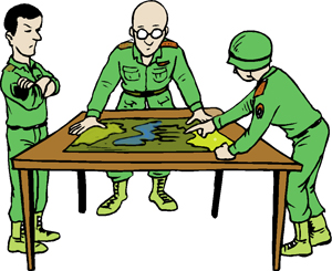 Так и видим: склонились военные над картой.